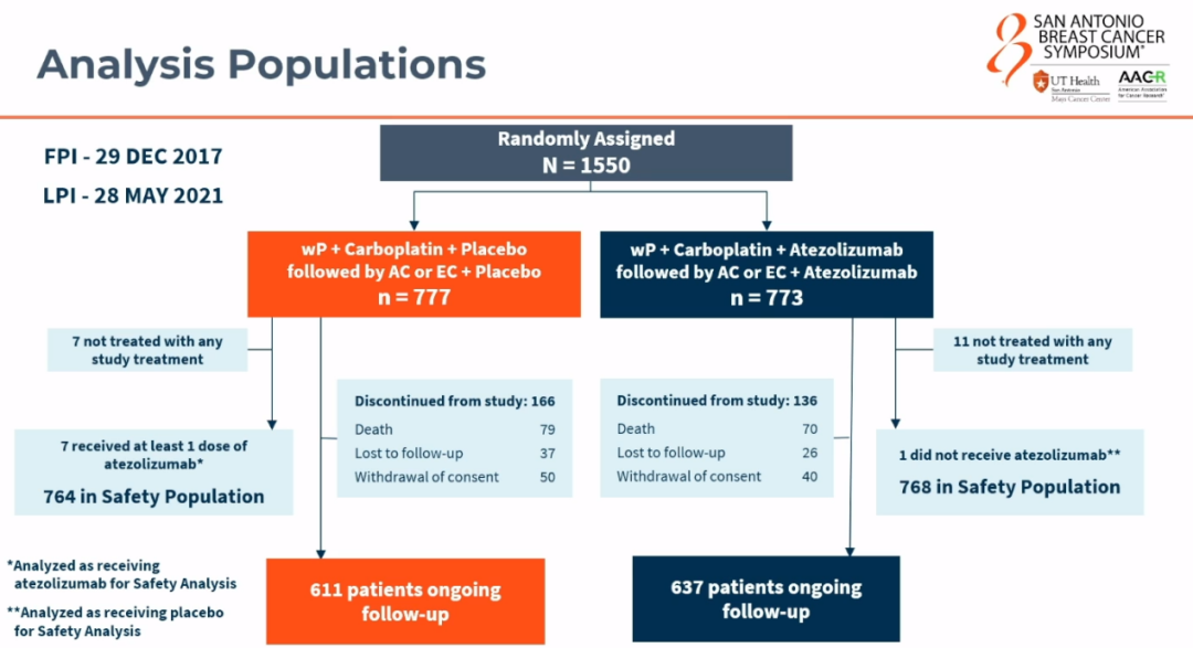 The Pembrolizumab study was an ambitious global study that was sponsored by the company,had multiple sites,patients around the world.Our study was a smaller study limited to Europe and U.S.,largely Germany and Spain,and actually in Europe.So it took us twice as long to accrue our study.And that’s why we learned the results of the KEYNOTE-522 several years before we were able to report our study.So our study actually started as a contemporary trial,but we just now had sufficient events to report our primary endpoint of event-free survival.And so,you know,it was just a question:could an inhibitor of PD-L1 as opposed to an inhibitor of PD-1,which is what Pembro inhibits,what kind of effect could it have in triple negative breast cancer.