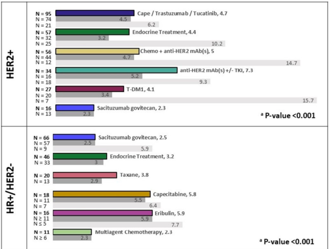 图5.美国真实世界中不同亚型乳腺癌T-DXd后续治疗的rwPFS