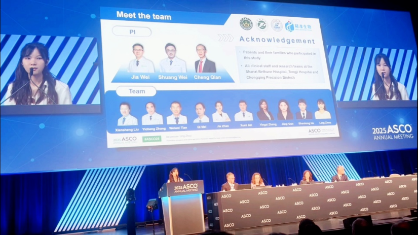 编者按:近日,2025年美国临床肿瘤学会(ASCO)年会于美国芝加哥盛大召开。作为全球临床肿瘤领域最具规模与影响力的学术盛会,ASCO年会汇聚世界顶尖肿瘤学专家,共同聚焦前沿研究与临床难题,推动全球癌症治疗持续进步。在本届大会上,华中科技大学附属同济医院隗佳教授、魏双教授团队与重庆精准生物团队合作开展的低氧响应性癌胚抗原(CEA)靶向CAR-T细胞治疗晚期复发或难治性非小细胞肺癌(NSCLC)I期临床研究(摘要号:8517)入选快速口头报告,该研究旨在验证低氧响应性CEA CAR-T细胞在NSCLC中的应用潜力。《肿瘤瞭望》现场特邀口头汇报讲者华中科技大学附属同济医院周灵博士全面分享研究内容,主要研究者华中科技大学附属同济医院隗佳教授及魏双教授进行深度点评,以期为CAR-T细胞疗法在肺癌领域中的优化及应用提供全新视角。
