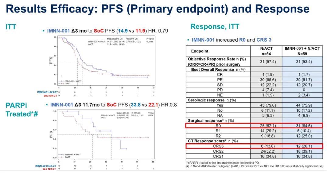 2.Thaker p,et al.A phase I/II study of the safety and efficacy of intraperitoneal IMNN-001 in combination with neoadjuvant chemotherapy(NACT)of paclitaxel and carboplatin in patients newly diagnosed with advanced epithelial ovarian cancer(EOC):Updated survival analysis from OVATION-2 trial.2025 ASCO,abstract 5516.