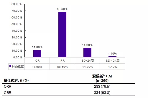 哌柏西利(爱博新?)是全球及我国首个上市的CDK4/6抑制剂,在II期临床研究PALOMA-1[1]中,哌柏西利+AI较单用AI显著延长10个月的无进展生存期(PFS),数值上延长3个月的总生存期(OS)。Ⅲ期临床研究PALOMA-2[2]证实,哌柏西利+AI有效延缓一线内分泌治疗耐药的发生,一线PFS可达到27.6个月。PALOMA-2 亚组分析发现,无论患者既往是否接受过内分泌治疗、无治疗间期(TFI)长短,PFS均有显著获益。哌柏西利可提升客观缓解率(ORR)和临床获益率(CBR),在具有可测量病灶人群中,ORR达55.3%,CBR达84.3%。