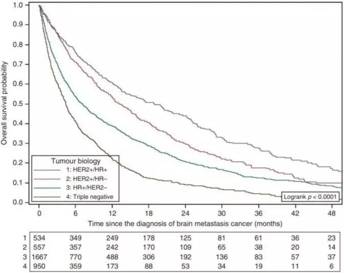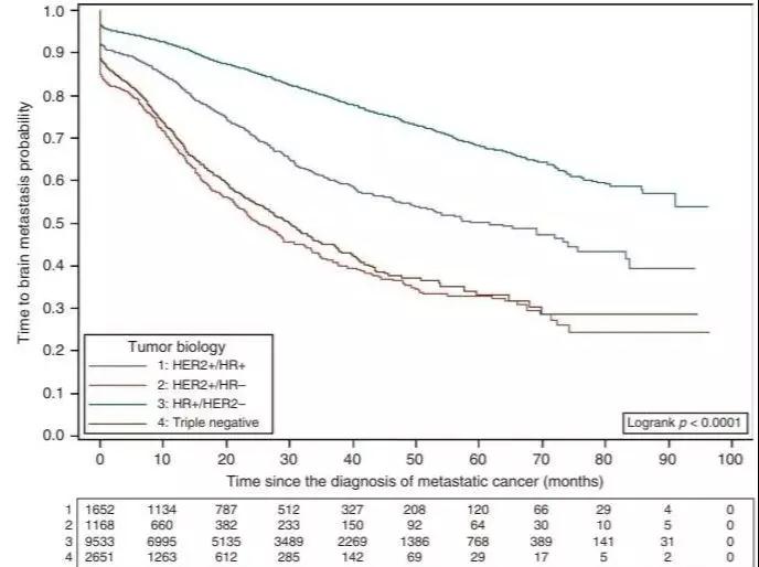 导读:转移性乳腺癌(MBC)的行为因激素受体(HR)和人表皮生长因子受体(HER2)状态而异。法国蒙彼利埃大学Darlix等报告的一项大型多中心真实世界研究显示,肿瘤分子亚型可强烈影响转MBC患者中枢神经系统(CNS)转移的发生率、动力学和预后等。该研究论文于11月13日在线发表于《英国癌症杂志》(Br J Cancer)