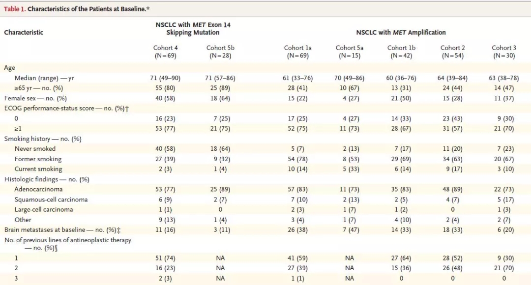 在2020年1月进行最终分析时,MET扩增拷贝数低于10的患者,即队列(1b、2、3),因疗效较差而被提前关闭。