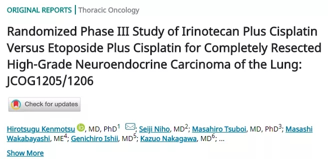 JCOG1205/1206研究旨在验证伊立替康联合顺铂、依托泊苷联合顺铂作为病理分期I-IIIA、完全切除的肺高级别神经内分泌癌术后辅助化疗的优越性。