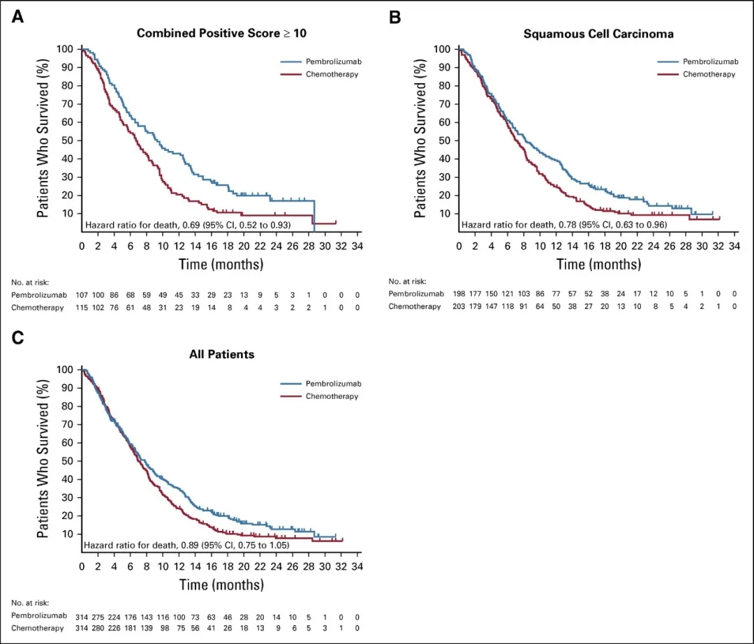 2.Takashi Kojima, et al. Randomized Phase III KEYNOTE-181 Study of Pembrolizumab Versus Chemotherapy in Advanced Esophageal Cancer. Journal of Clinical Oncology. DOI: 10.1200/JCO.20.01888