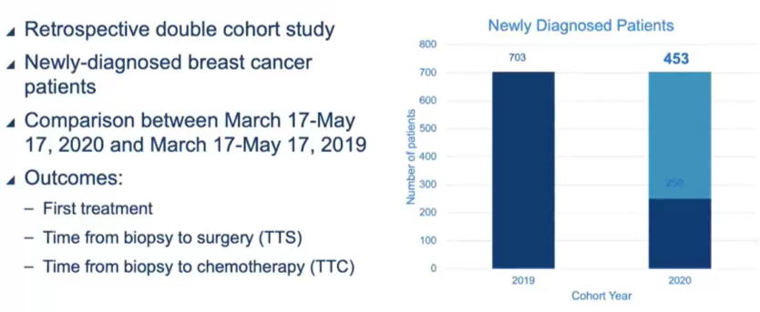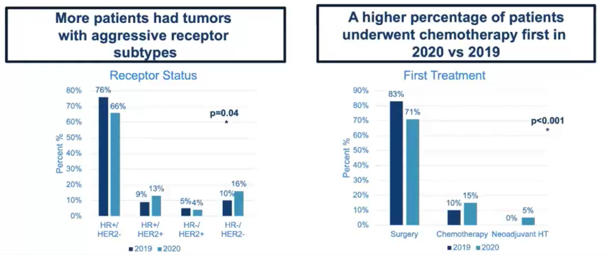 研究者对2020年3月17日(开始实施SiP)至2020年5月18日(恢复择期手术)期间新诊断的279例患者进行了回顾性研究,并与2019年3月17日至2019年5月18日之间确诊790例患者在年龄、组织学、解剖分期特征、分级、受体状况和初始治疗进行了比较。对于接受手术的患者,比较了从活检到手术(TTS)的时间和手术类型。