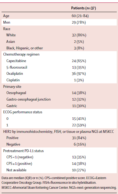 研究背景:曲妥珠单抗联合化疗是目前HER2阳性晚期胃癌及胃食管结合部腺癌的标准治疗。然而在胃癌中该靶点的治疗效果和乳腺癌相比要差很多,而PD-1抑制剂在HER2阳性晚期食管胃癌人群中疗效如何尚不清楚。既往研究证实,HER2阳性乳腺癌对曲妥珠单抗耐药后联合PD-1抑制剂,仍有15%能达到PR,因此PD-1抑制剂和曲妥珠单抗可能具有协同作用。