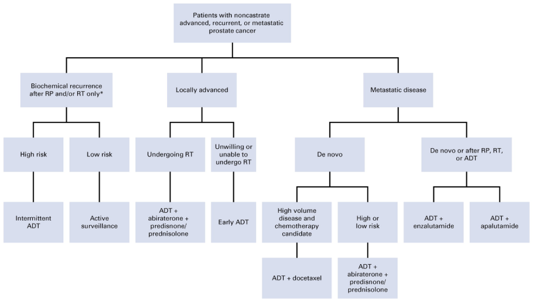 Virgo KS, Rumble RB, de Wit R, et al. Initial Management of Noncastrate Advanced, Recurrent, or Metastatic Prostate Cancer: ASCO Guideline Update [published online ahead of print, 2021 Jan 26]. J Clin Oncol. 2021;JCO2003256. doi:10.1200/JCO.20.03256