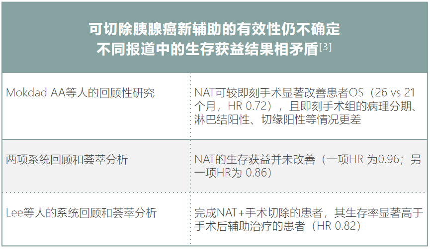 胰腺癌的新辅助治疗存在巨大争议,原因首先在于目前缺乏特别有效的胰腺癌治疗方式,包括化疗、放疗、靶向治疗、免疫治疗或内分泌治疗等效果均不理想。其次,胰腺外科相比于其他外科,对医生在技术、观念、经验、病情判断方面都有极高要求。例如在切除判断标准方面[2],同一患者在不同胰腺外科医生的判断下,可能得出可切除、临界可切除和局部进展期胰腺癌三种不同结果。