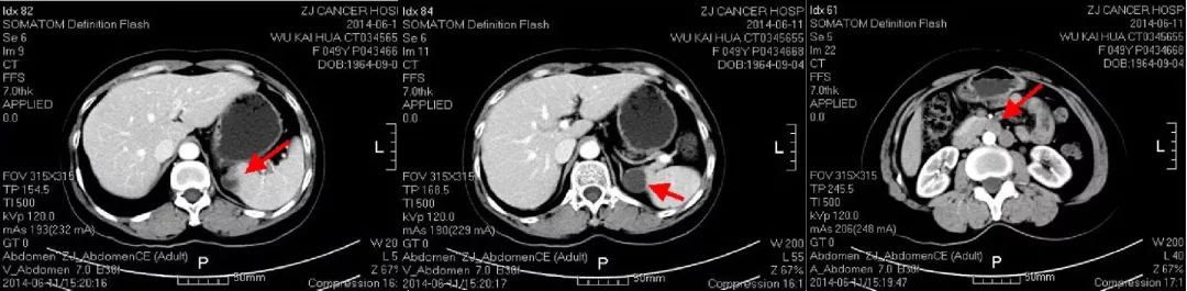 2014.6.22行再次减瘤术(脾切除+胰尾切除+部分左肾上腺切除+肝肾隐窝结节切除+腹主动脉旁淋巴结切除),术后无肉眼残留(R0切除)。
