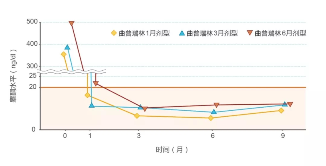 图1. 长效LHRHa剂型持续稳定降低睾酮<20 ng/dl