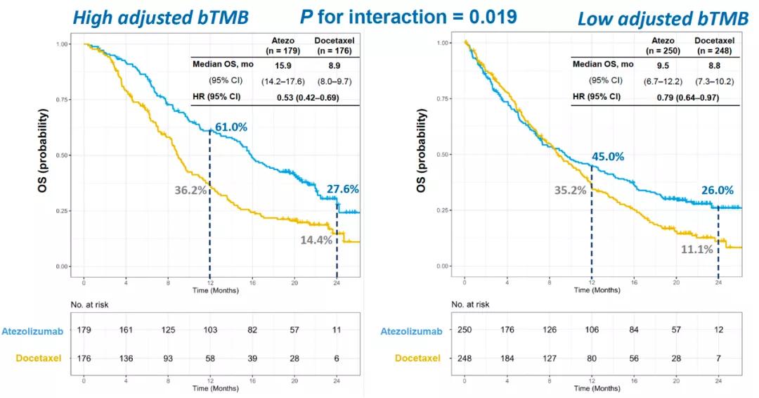 图1.高abTMB与低abTMB组中Atezo组vs.Docetaxel组OS比较