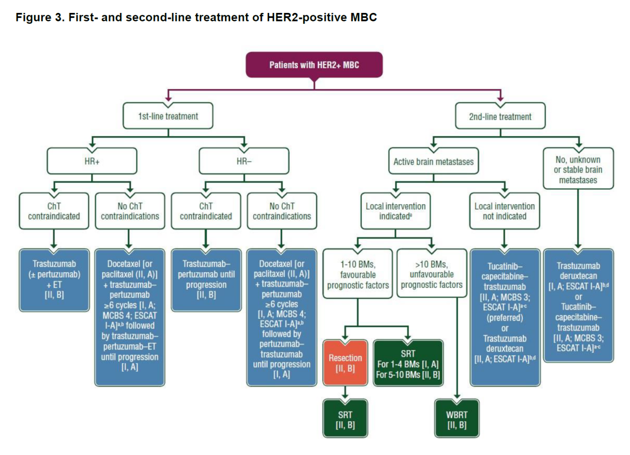 随着今年ESMO会议中DESTINY-Breast03临床研究结果公布,HER2+晚期乳腺癌规范化治疗的路径出现风云突变,必将再破时局。对于HER2+晚期乳腺癌一线治疗依然选择曲妥珠单抗联合帕妥珠单抗联合紫杉类药物。在疾病出现进展时,对于没有脑转移的HER2+晚期乳腺癌,二线治疗必然将T-DXd视为首屈一指的选择,疾病再次出现进展可以选择T-DM1或者TKI联合曲妥珠单抗联合化疗;而对于出现中枢神经系统疾病进展HER2+晚期乳腺癌,优选TKI(图卡替尼)联合曲妥珠单抗联合化疗治疗策略,T-DXd也可以成为明智之举(ESMO指南ⅡA级推荐)。总之,新一代ADC药物的上市,为HER2+晚期乳腺癌的规范化治疗带来新的机遇,也为HER2+晚期乳腺癌患者带来生的希望。