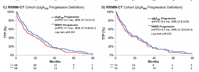 在无进展生存(PFS)预估中的比较: IMWG标准(即MCP) vs qIgA标准