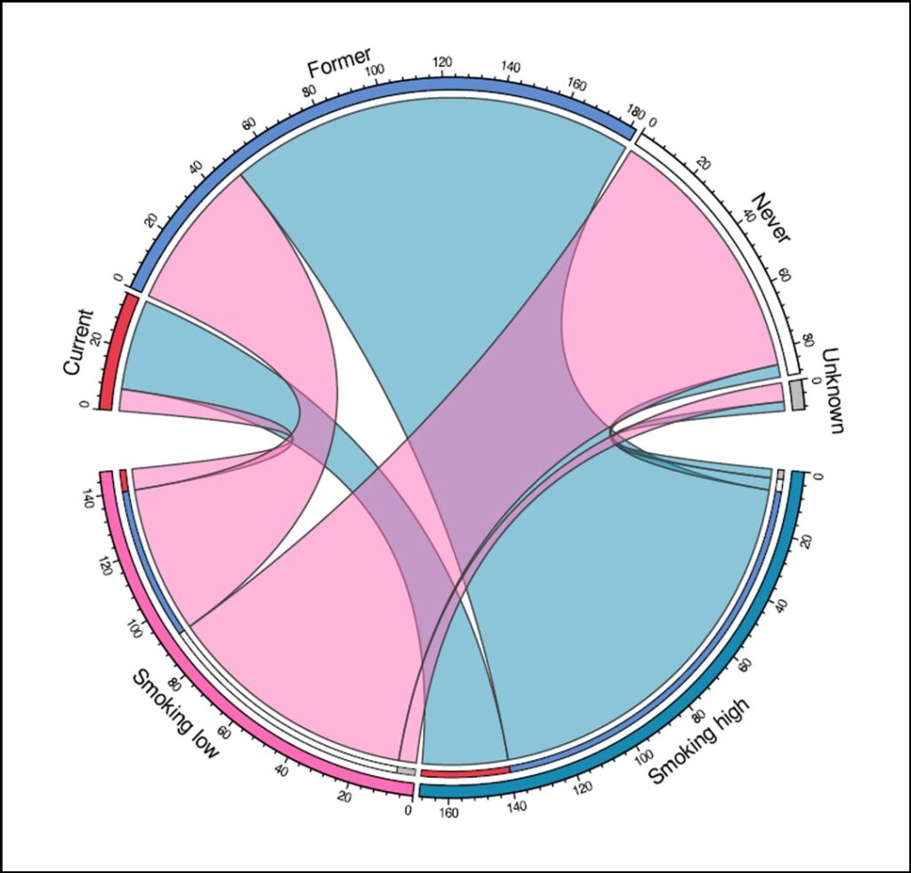 随着NSCLC分子诊断领域的不断发展扩大,我们有机会更准确地将肿瘤分类为与吸烟相关和非相关的类型。例如,二代测序(NGS)可用于识别由各种内源性和外源性过程引起的体细胞突变模式,即突变标签。[5]其中一些突变标签之前已被证明与吸烟相关,因此我们根据个体基因组肿瘤特征对吸烟和非吸烟相关NSCLC进行分类。尽管NGS在大多数医疗机构成为标准操作,但基于基因组的NSCLC分类尚未纳入日常临床实践或临床研究。