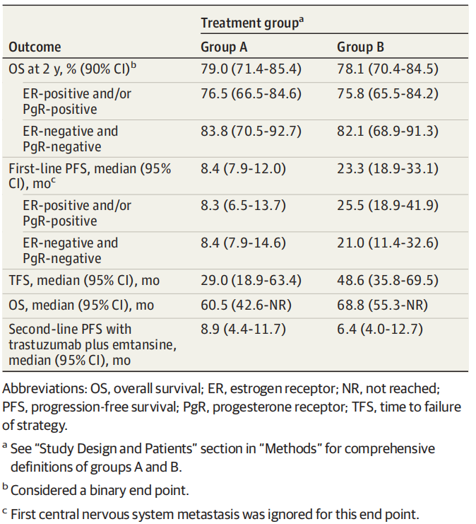 JAMA Oncol丨曲帕双靶不联合化疗在部分HER2阳性MBC患者一线治疗中或许更胜一筹