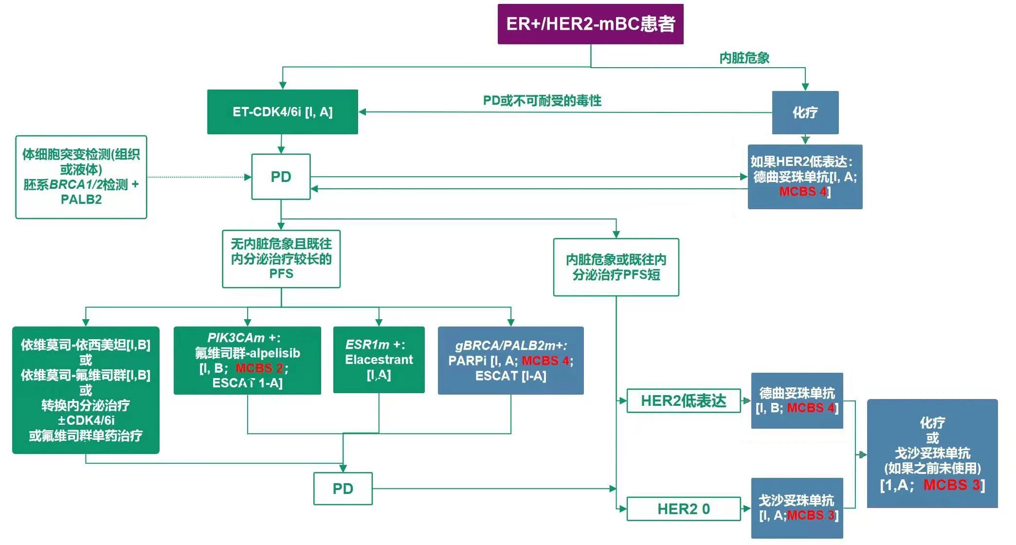 △图1新版ESMO指南推荐的ER+/HER2-mBC治疗