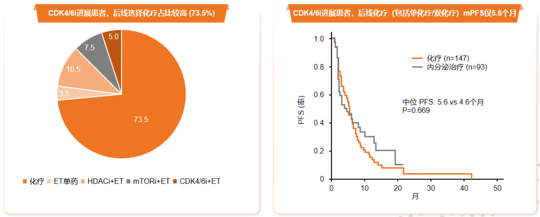 △YOUNGBC-9中国真实世界研究:CDK4/6i进展后,后线选择化疗占比高,但化疗mPFS不足半年