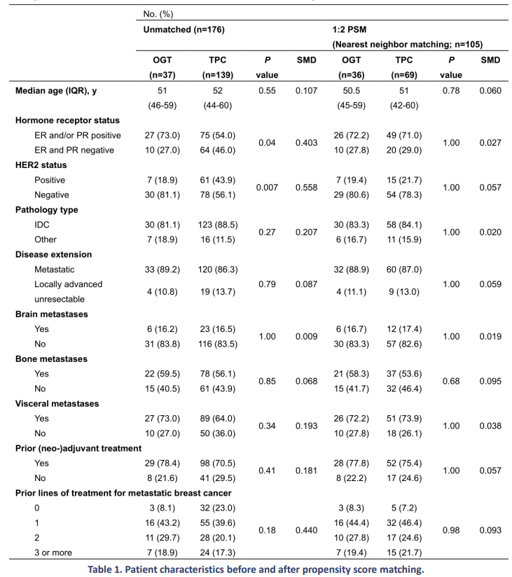与TPC相比,接受OGT治疗的MBC患者与更优的无进展生存相关。基于PDO药敏检测的功能性精准医学不失为优化晚期乳腺癌治疗策略的一可行手段。