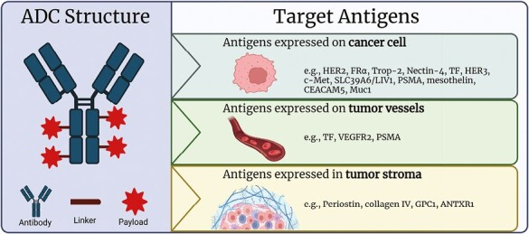 通常认为癌细胞上的特定靶抗原对于抗体偶联药物(ADC)的作用至关重要;目前ADC发展迅速,种类不断增多,利用合适的生物标志物指导药物选择可以达到更好的疗效。本文探讨了研究较为成熟的乳腺癌靶抗原及其相关ADC药物。此外,评估和量化靶标(如分子成像和体外测定)可能是改善生物标志物分析的关键工具,并最终使患者拥有更多获益。