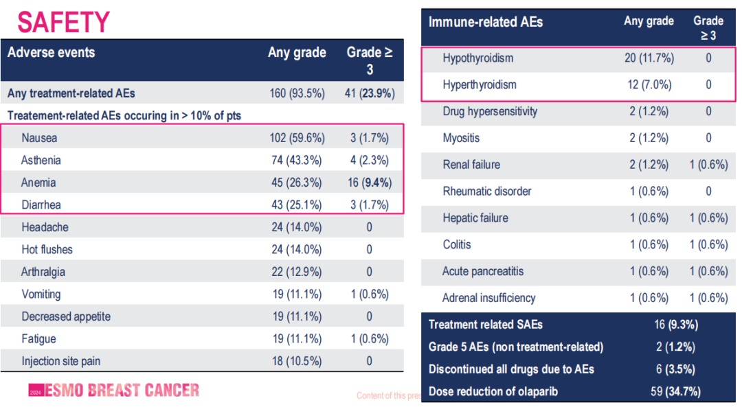 在内分泌耐药的ER+/HER2-mBC中,若伴有对PARP抑制剂敏感潜在分子表型,度伐利尤单抗联合奥拉帕利和氟维司群联合应用展现出较好的临床效果,并具有可接受的毒性特征。