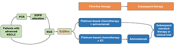 图.治疗EGFR Ex20ins晚期NSCLC的一般方法和当前治疗策略